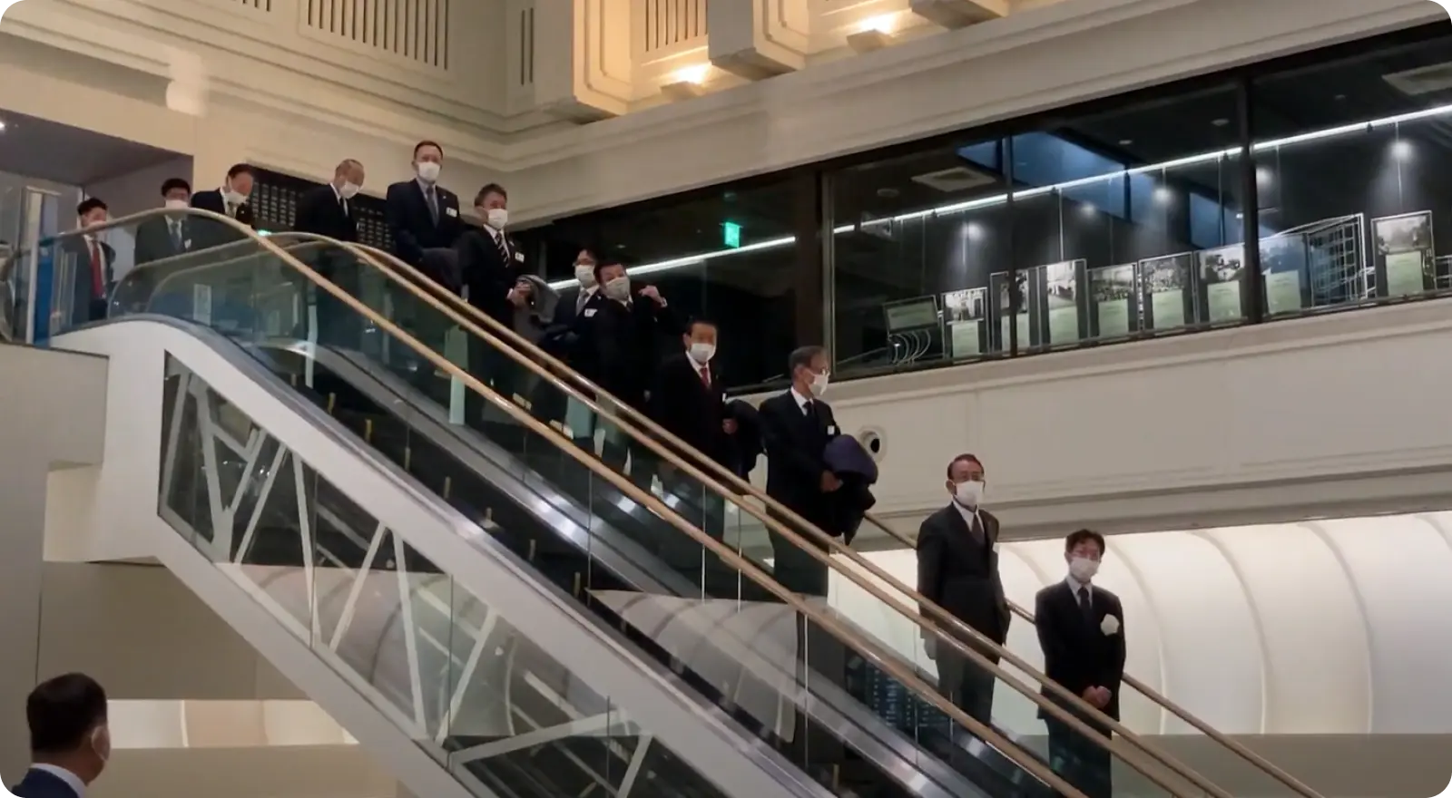 エスカレーターで降りてくる出席者