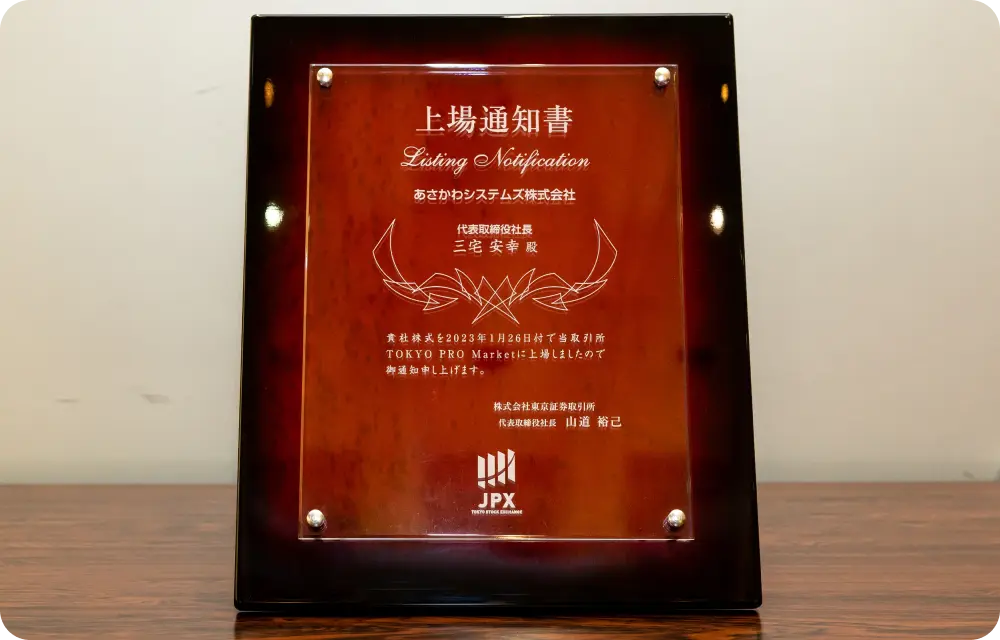 次に東証より上場の上場通知書を受領しました。