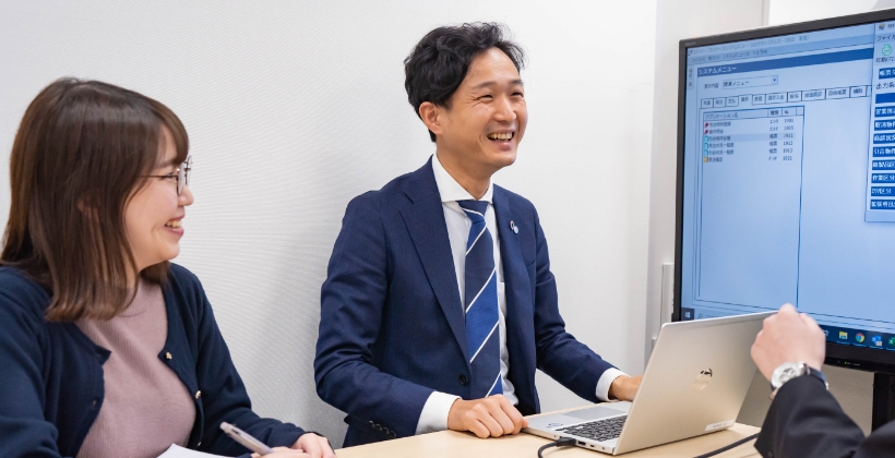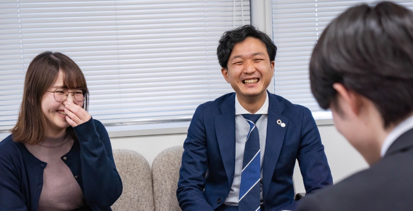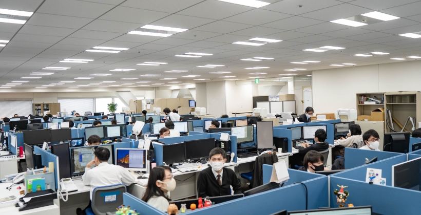 オフィスの雰囲気はどんな感じ? 社長を含め、全員が机を並べて仕事をしています。そのため、自分のやりたい事を社長に直接相談!という事も気軽にできる環境です。現在、本社で働いているのは約60名で、思いやりのあるメンバーも多く、風通しの良さは自慢のひとつです。きっと居心地の良さを感じていただけると思います!
